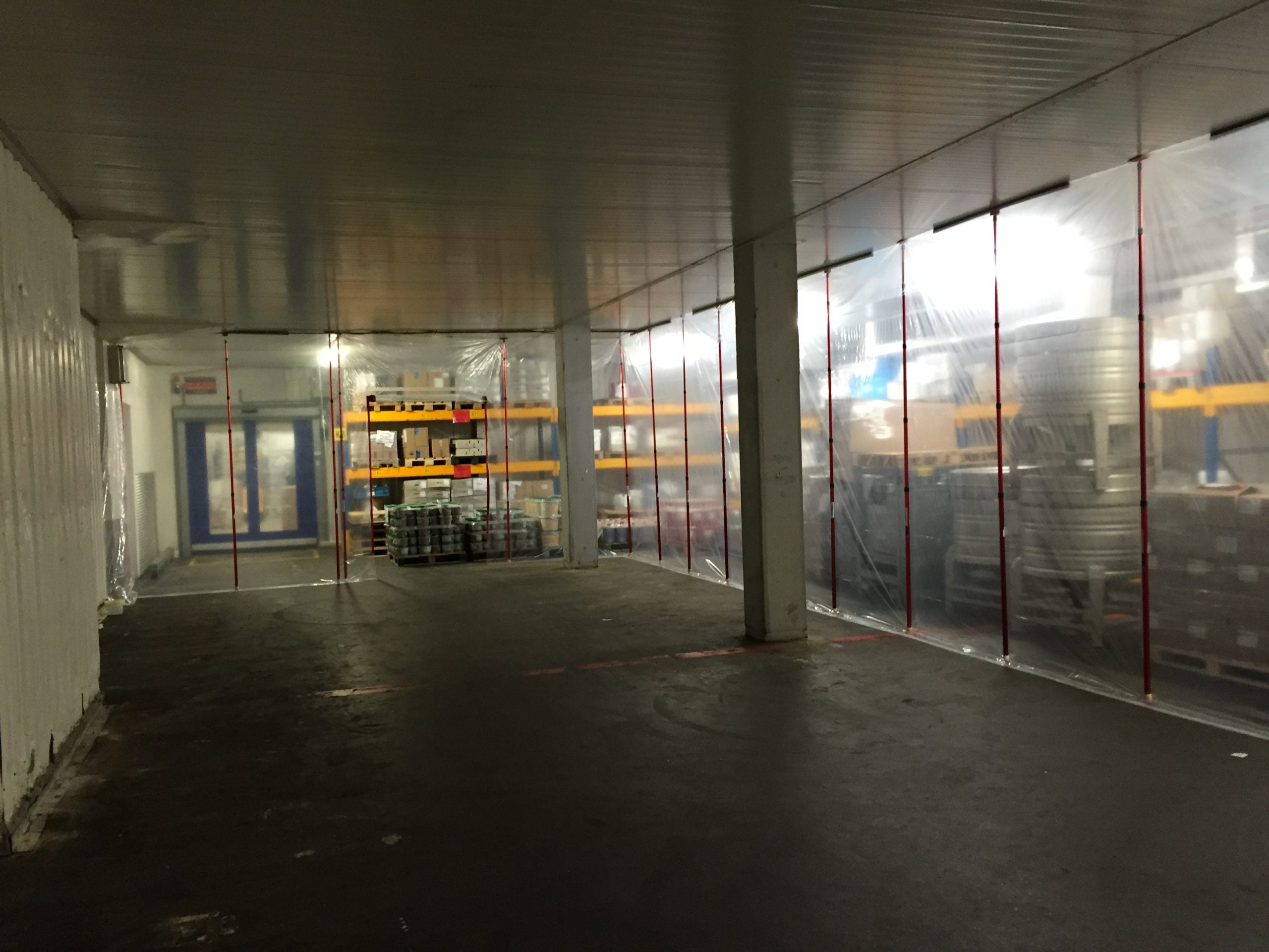 Für unseren Auftraggeber Verstegen Spices & Sauces in Rotterdam haben wir zwei Staubschutzwände mit einer Gesamtlänge von 74 m installiert. Die hohe Wand ist 5,60 m hoch und die niedrige Wand 3,65 m hoch. Die niedrige Wand musste in einer Kühlzelle installiert werden. Durch den Einsatz unserer Staubwand/Trennwand konnte die Kühlzelle während der Renovierungsarbeiten weiterhin genutzt werden.